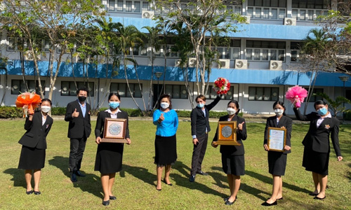 วันที่ 17 ธันวาคม 2564 ดร.ปัทมา ผ่องศิริ ผู้อำนวยการวิทยาลัยพยาบาลบรมราชชนนี สรรพสิทธิประสงค์ (วพบ.สปส.) ดร.นภัทร บุญเทียม หัวหน้างานวิเทศสัมพันธ์ อาจารย์ทัตภณ พละไชย อาจารย์ที่ปรึกษาและผู้รับผิดชอบโครงการฯ พร้อมด้วยนักศึกษา เพื่อนำเสนอผลงานที่ได้รับรางวัลในระดับชาติและระดับนานาชาติ ปีงบประมาณ 2565 จากที่งานกิจการนักศึกษา ฝ่ายวิชาการ ได้ส่งผลงานนวัตกรรมของนักศึกษาเข้าร่วมประกวด ในเวทีประชุมวิชาการ ระดับชาติและระดับนานาชาติ " The 5th Nursing Student Forum: How We Fight the COVID-19: Research, Practice, and Innovations " ผ่านระบบ online ของ วิทยาลัยพยาบาลบรมราชชนนี พะเยา และภาคีเครือข่ายในประเทศและต่างประเทศ วิทยาลัยฯ ได้ส่งผลงานเข้าร่วมประกวดจำนวน 3 เรื่อง โดยได้รับรางวัลทั้ง 3 เรื่อง และเข้ารับมอบรางวัลนำเสนอผลงานนักศึกษาระดับชาติและระดับนานาชาติ ประจำปีการศึกษา 2564 จากสถาบันพระบรมราชชนก กระทรวงสาธารณสุข ณ วิทยาลัยพยาบาลบรมราชชนนี จังหวัดนนทบุรี โอกาสนี้ขอแสดงความยินดีกับนักศึกษาพยาบาลของวิทยาลัยฯ (วพบ.สปส.) ที่ได้รับรางวัลการประกวดการนำเสนอผลงานนวัตกรรมในระดับชาติและระดับนานาชาติ ประจำปีการศึกษา 2564 โดยมี 3 รางวัลดังนี้ 1. ระดับนานาชาติ (International) ได้รับรางวัล ชนะเลิศ เรื่อง Development of a predictive screening tool for patients reporting symptoms of acute coronary syndrome 2.ระดับนานาชาติ (International) ได้รับรางวัล รองชนะเลิศอันดับที่ 4 เรื่อง Application for knowledge development and clinical judgment in elderly patient with derilium for nursing student 3. ระดับชาติ ได้รับรางวัล รองชนะเลิศอันดับที่ 2 เรื่อง การพัฒนาเครื่องบริหารเพิ่มมวลกล้ามเนื้อและความแข็งแรงของกล้ามเนื้อป้องกันการพลัดตกหกล้มในผู้สูงอายุ กิจกรรมครั้งนี้ กล่าวได้ว่าเป็นการพัฒนาศักยภาพนักศึกษา ด้านการพัฒนาการจัดการความรู้ที่มีประสิทธิภาพ สนับสนุนการแลกเปลี่ยนเรียนรู้ผลการดำเนินงานด้านการผลิตและการนำเสนอผลงานวิชาการในระดับชาติและระดับนานาชาติของนักศึกษให้ขยายวงกว้างออกไป การเรียนรู้แนวทางปฏิบัติที่ดีจากการจัดการความรู้สู่การเผยแพร่และใช้ประโยชน์ในครั้งนี้ กล่าวได้ว่าเป็นการช่วยเหลือประชาชน ให้ได้รับการดูแลอย่างถูกวิธี และนำผลงานนวัตกรรมที่ได้รับรางวัลไปใช้ในการช่วยเหลือผู้ป่วย กรณีที่ต้องการฟื้นฟูสุขภาพด้วยการทำกายภาพ เพื่อให้ผู้ป่วยได้กลับมามีร่างกายแข็งแรง หรือมีสุขภาพที่ดีขึ้น สามารถดำเนินชีวิตได้ด้วยตนเองต่อไป