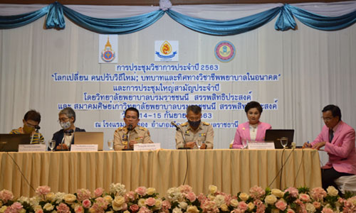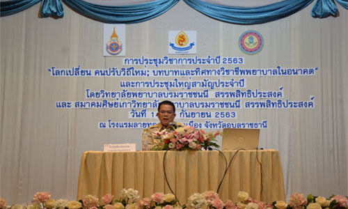 วันที่ 14 กันยายน 2563 เวลา 08.45 - 16.30 น. วิทยาลัยพยาบาลบรมราชชนนี สรรพสิทธิประสงค์ ร่วมกับ สมาคมศิษย์เก่าวิทยาลัยพยาบาลบรมราชชนนี สรรพสิทธิประสงค์ ได้จัด การประชุมใหญ่สามัญประจำปีและประชุมวิชาการประจำปี 2563 วิชาการเรื่อง "โลกเปลี่ยน คนปรับ วิถีใหม่ ทิศทางและบทบาทวิชาชีพพยาบาล" โอกาสนี้ นายอุทัย ทองเดช รองผู้ว่าราชการจังหวัดอุบลราชธานี เป็นประธานในพิธีเปิด กล่าวรายงานโดย ดร.ปัทมา ผ่องศิริ ผู้อำนวยการวิทยาลัยพยาบาลบรมราชชนนี สรรพสิทธิประสงค์ ช่วงการบรรยายพิเศษ ได้รับเกียรติจากวิทยากรมากความสามารถ ดังนี้ 1. เรื่อง "โลกเปลี่ยน คนปรับ วิถีใหม่ ทิศทางและบทบาทวิชาชีพพยาบาล" โดย รศ.ดร.ทัศนา บุญทอง นายกสภาพยาบาล 2. เรื่อง "บทบาทวิชาชีพพยาบาล ในการเอื้ออำนวยให้เกิดกระบวนการกระตุ้นพลังของชุมชน(Community Engagement)ในยุคโลกเปลี่ยน คนปรับวิถีใหม่" โดย ผศ.ดร.เสาวมาศ คุณล้าน เถื่อนนาดี อดีตคณบดี คณะพยาบาลศาสตร์ มหาวิทยาลัยขอนแก่น 3.การอภิปรายเป็นคณะ"บทบาทวิชาชีพพยาบาล ในยุค COVID 19" โดย - นายอุทัย ทองเดช รองผู้ว่าราชการจังหวัดอุบลราชธานี - นพ.สุวิทย์ โรจนศักดิ์โสธร นายแพทย์สาธารณสุขจังหวัดอุบลราชธานี - ดร.ปัทมา ผ่องศิริ ผู้อำนวยการวิทยาลัยพยาบาลบรมราชชนนี สรรพสิทธิประสงค์ - พว.อรชร มาลาหอม หัวหน้าฝ่ายการพยาบาล โรงพยาบาลสนาม - พว.พิมณทิพา มาลาหอม หัวหน้าศูษย์ความร่วมมือระหว่างประเทศ ด้านสาธารณสุข ณ ห้องประชุมโรงแรมลายทอง อ.เมืองจ.อุบลราชธานี