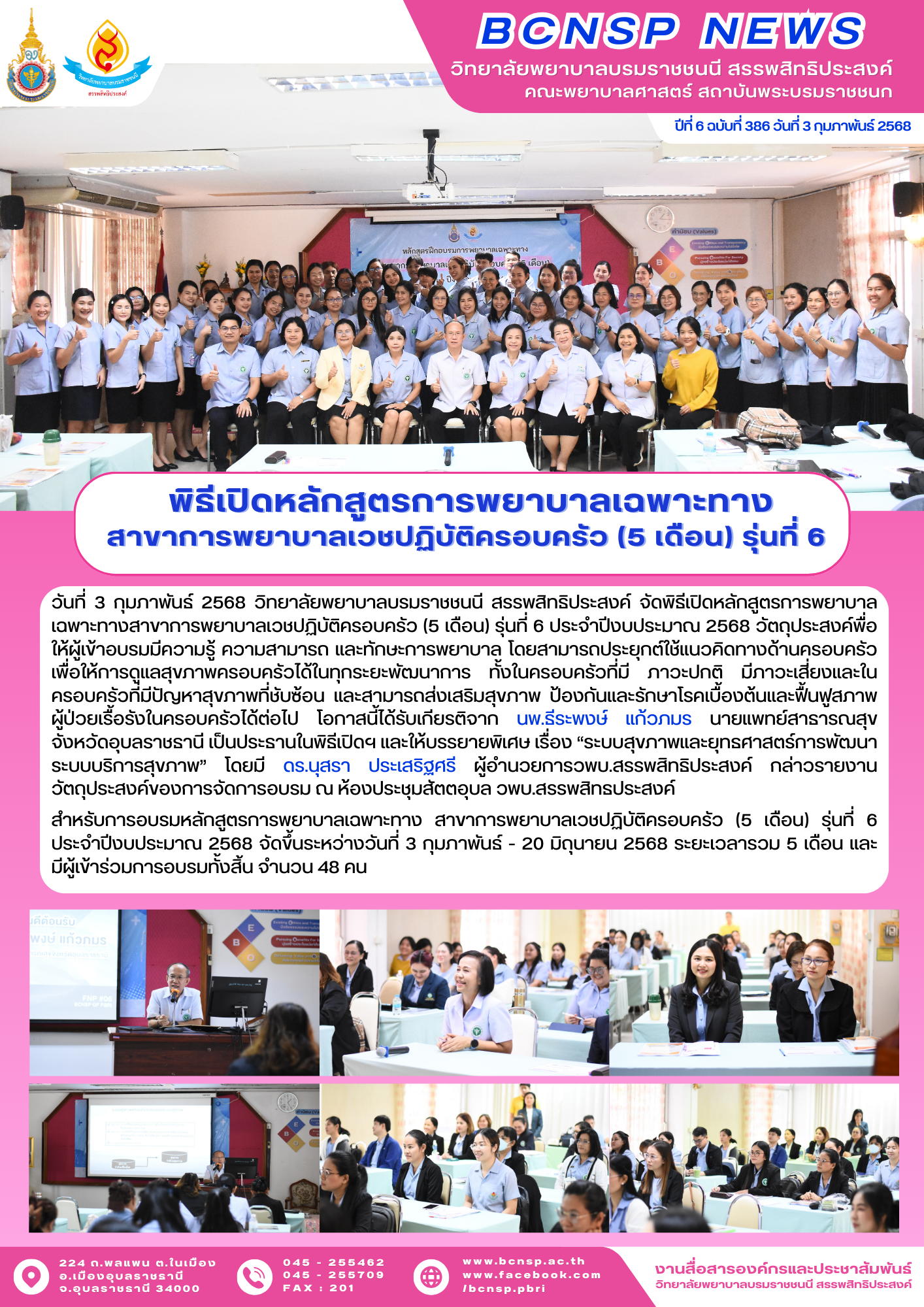สาขาการพยาบาลเวชปฏิบัติครอบครัว (5 เดือน) รุ่นที่ 6