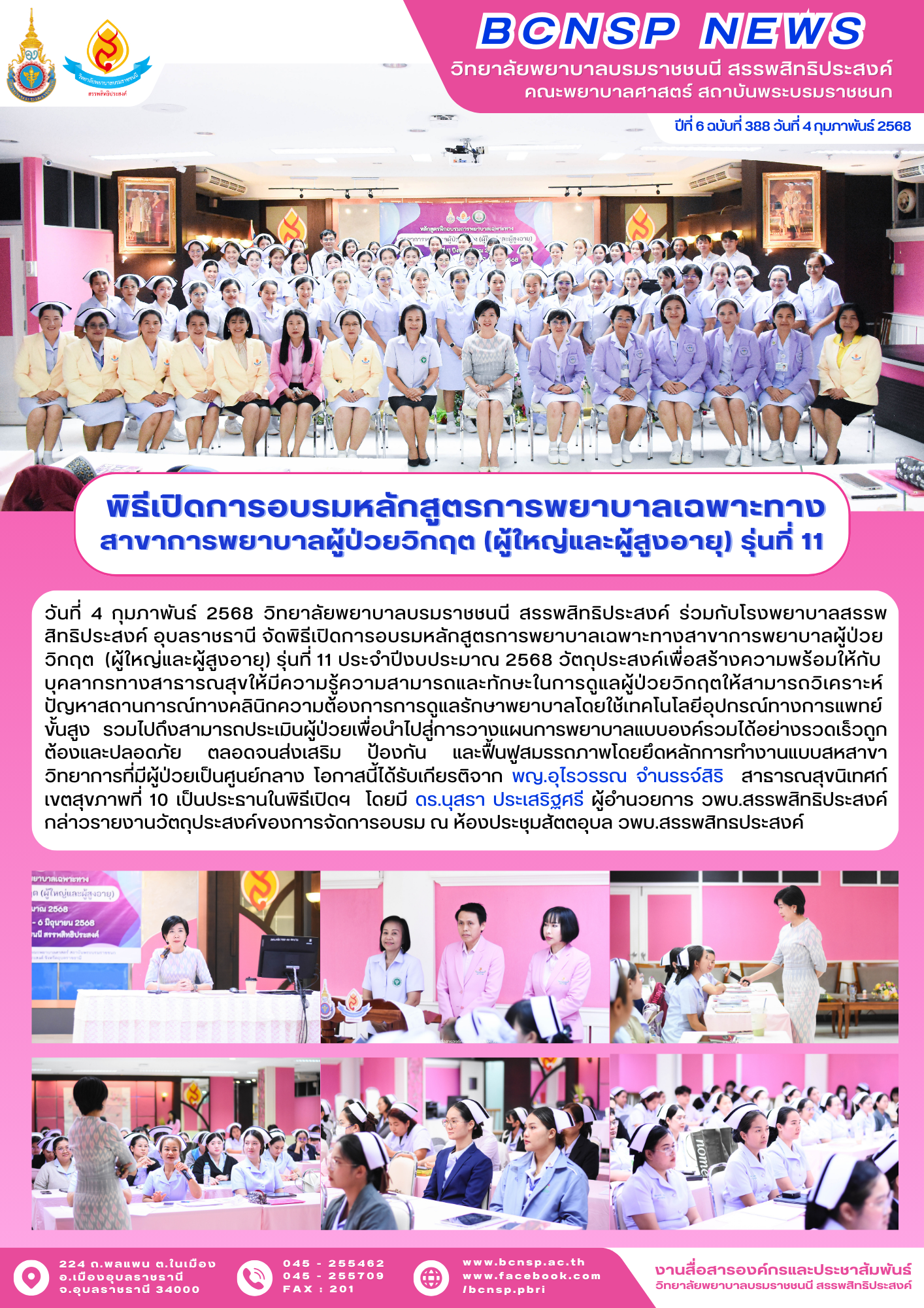 สาขาการพยาบาลผู้ป่วยวิกฤต (ผู้ใหญ่และผู้สูงอายุ) รุ่นที่ 11