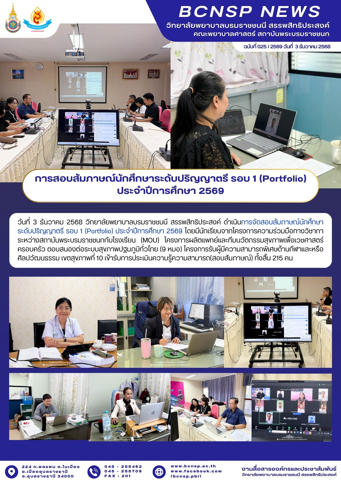 ประกาศรายชื่อผู้มีสิทธิ์เข้าสอบข้อเขียนและสัมภาษณ์หลักสูตรประกาศนียบัตรผู้ช่วยพยาบาบาล รอบที่ ๓ ปีการศึกษา ๒๕๖๘
