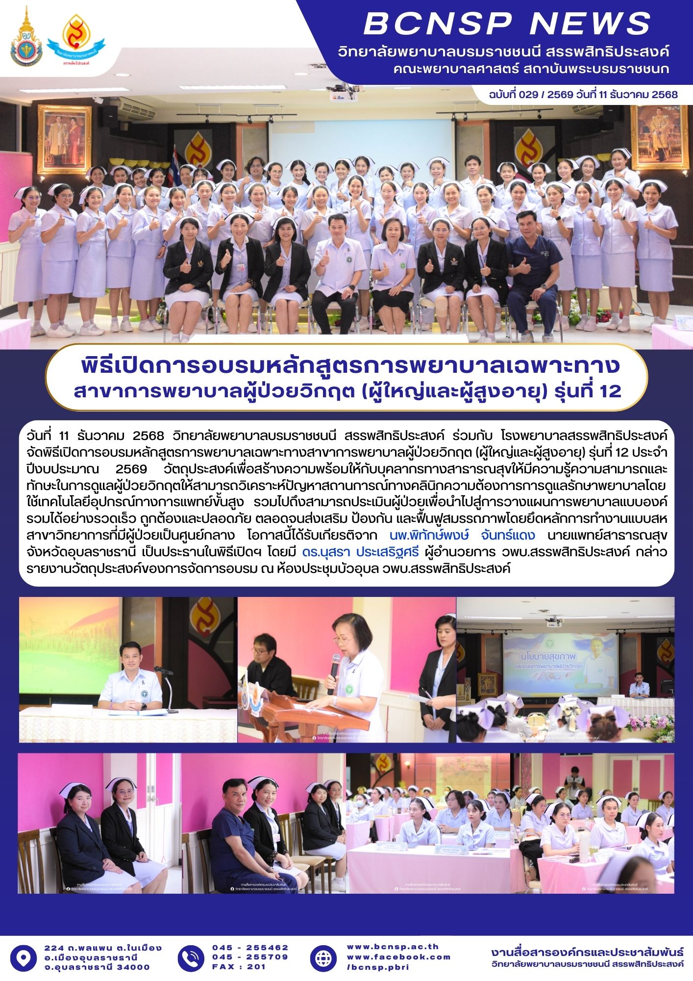 รายชื่อผู้มีสิทธิ์เข้าอบรมหลักสูตรการพยาบาลเฉพาะทางสาขาการพยาบาลผู้ป่วยวิกฤต(ผู้ใหญ่และผู้สูงอายุ) รุ่นที่ 12 ประจำปีงบประมาณ 2569
