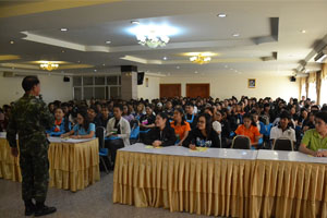 งานฝึกอบรม ฝ่ายบริการวิชาการและพัฒนาองค์ความรู้ วิทยาลัยพยาบาลบรมราชชนนี สรรพสิทธิประสงค์ ได้จัดโครงการปฐมนิเทศข้าราชการใหม่ หลักสูตรการเป็นข้าราชการที่ดี รุ่นที่ 3 ปีงบประมาณ 2560 โดยในวันที่ 17 เมษายน 2560 รองผู้อำนวยการฝ่ายบริการวิชาการและพัฒนาองค์ความรู้ วิทยาลัยพยาบาลบรมราชชนนี สรรพสิทธิประสงค์ อาจารย์จรูญศรี มีหนองหว้า ได้ให้เกียรติมาเป็นประธานในพิธีส่งมอบข้าราชการใหม่ จำนวน 252 คน ให้อยู่ในความดูแลของชุดครูฝึกศูนย์การเรียนรู้เศรษฐกิจพอเพียง มณฑลทหารบกที่ 22 นำโดย ร.อ.มนต์ศักดิ์ ศักดิ์ศรี และคณะ เป็นเวลาทั้งสิ้น 36 ชั่วโมง..