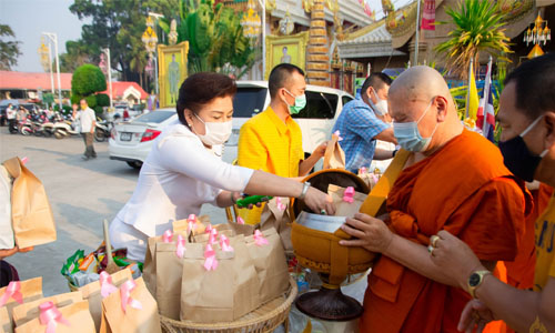 วันที่ 26 กุมภาพันธ์ 2564 (เวลา 06.30 - 08.00 น.) ดร.ปัทมา ผ่องศิริ ผู้อำนวยการวิทยาลัยพยาบาลบรมราชชนนี สรรพสิทธิประสงค์ อาจารย์ บุคลากรสายสนับสนุน และนักศึกษาของวิทยาลัยฯ ร่วมตักบาตรพระสงฆ์ งานสัปดาห์เผยแผ่พระพุทธศาสนา เนื่องในเทศกาลวันมาฆบูชา ประจำปี 2564 ณ วัดมหาวนาราม พระอารามหลวง ตำบลในเมือง อำเภอเมือง จังหวัดอุบลราชธานี