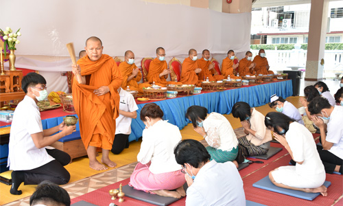 วันที่ 4 มีนาคม 2564 (เวลา 10.30 - 11.30 น.) วิทยาลัยพยาบาลบรมราชชนนี สรรพสิทธิประสงค์ นักศึกษาพยาบาลศาสตรบัณฑิตชั้นปีที่ 4 รุ่นที่ 48ได้จัดกิจกรรมอำลาชุดฟ้า - ขาว และทำบุญเลี้ยงพระ ถวายภัตตาหารเพลพระสงฆ์ จำนวน 9 รูป โอกาสนี้ ดร.ปัทมา ผ่องศิริ ผู้อำนวยการวิทยาลัยพยาบาลบรมราชชนนี สรรพสิทธิประสงค์ เป็นประธานในพิธีจุดธูปเทียนบูชาพระรัตนตรัย และถวายสังฆทาน รองผู้อำนวยการฯ คณาจารย์ บุคลากรสายสนับสนุนและนักศึกษาร่วมกิจกรรมในครั้งนี้ ณ บริเวณใต้ตึกอาคารเรียนและหอนอน 11 ชั้น