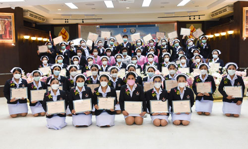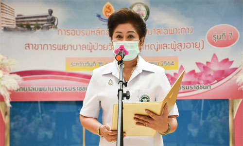 วันที่ 13 สิงหาคม 2564 วิทยาลัยพยาบาลบรมราชชนนี สรรพสิทธิประสงค์ ได้จัดพิธีปิดการอบรม หลักสูตรการพยาบาลเฉพาะทาง สาขาการพยาบาลผู้ป่วยวิกฤติ (ผู้ใหญ่และผู้สูงอายุ) รุ่นที่ 7 ประจำปีงบประมาณ 2564 ซึ่งการอบรมได้จัดขึ้น ระหว่างวันที่ 15 กุมภาพันธ์ – 13 สิงหาคม 2564 ผ่านการอบรมในรูปแบบ Online และ On site ภายใต้มาตรการ DMHT ป้องกันโควิด -19 โอกาสนี้ ดร.ปัทมา ผ่องศิริ ผู้อำนวยการฯ เป็นประธานในพิธีปิดการอบรมฯ ณ ห้องประชุมบัวอุบล วพบ.สรรพสิทธิประสงค์
