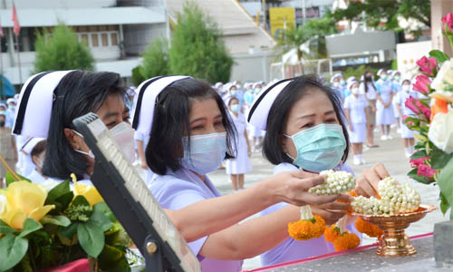 วันที่ 21 ตุลาคม 2564 วิทยาลัยพยาบาลบรมราชชนนี สรรพสิทธิประสงค์ ได้จัดกิจกรรม "วันพยาบาลแห่งชาติ" ประจำปี 2564 ซึ่งเป็นวันคล้ายวันพระราชสมภพของสมเด็จพระศรีนครินทราบรมราชชนนี โดยการจัดกิจกรรมแบ่งเป็น 2 ช่วงดังนี้ - ช่วงที่ 1 เป็นพิธีถวายพานพุ่มดอกไม้สด และถวายมาลัยกรหน้าพระบรมราชานุสาวรีย์สมเด็จพระศรีนครินทราบรมราชชนนี และหม่อมเจ้าหญิงบุญจิราธร (ชุมพล) จุฑาธุช /มอบเกียรติบัตรนักศึกษาดีเด่น - ช่วงที่ 2 กิจกรรมจิตอาสา "เราทำความดี ด้วยหัวใจ" เพื่อพัฒนาสิ่งแวดล้อมภายในวิทยาลัยฯเนื่องในโอกาสวันพยาบาลแห่งชาติ และเพื่อถวายเป็นพระราชกุศลแด่สมเด็จพระศรีนครินทราบรมราชชนนี โอกาสนี้ ดร.ปัทมา ผ่องศิริ ผู้อำนวยการฯ เป็นประธานในพิธีฯ โดยมีคณาจารย์ บุคลากรสายสนับสนุน และนักศึกษาร่วมกิจกรรมในครั้งนี้