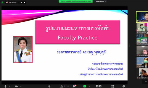 วิทยาลัยพยาบาลบรมราชชนนี สรรพสิทธิประสงค์ (วพบ.สปส.) ฝ่ายวิชาการ จัดการประชุมเชิงปฏิบัติการโครงการพัฒนาสมรรถนะอาจารย์ให้มีความเชี่ยวชาญเฉพาะสาขา (Faculty practice) สำหรับอาจารย์พยาบาลและพยาบาลวิชาชีพในหน่วยบริการสุขภาพ ระหว่างวันที่ 22 – 23 ธันวาคม 2564 ในรูป Online ผ่านโปรแกรม zoom meeting และ on site ถ่ายทอดสัญญาน ณ ห้องประชุมสัตตบงกช วพบ.สปส. เพื่อสร้างความเข้าใจและข้อตกลงร่วมกันระหว่างวิทยาลัยฯ กับพยาบาลวิชาชีพในหน่วยบริการสุขภาพที่อาจารย์พยาบาลทำ Faculty practice , เพื่อส่งเสริมให้อาจารย์เพิ่มพูนความเชี่ยวชาญทางการพยาบาลจากการปฏิบัติตามความเชี่ยวชาญของอาจารย์ , เพื่อให้อาจารย์ได้นำผลงานวิชาการด้านการพยาบาลที่ได้จากการทำ Faculty practice ไปประยุกต์ใช้ในสถานการณ์จริงของการทำงาน และเพื่อส่งเสริมความร่วมมือในด้านวิชาการ ด้านวิจัยและด้านอื่นๆระหว่างวิทยาลัยฯกับหน่วยบริการสุขภาพที่เป็นแหล่งฝึกปฏิบัติงานของนักศึกษาพยาบาล ซึ่งอาจารย์พยาบาลถือเป็นบุคคลสำคัญในการเป็นผู้ที่มีส่วนในการพัฒนาสมรรถนะทางคลินิกของนักศึกษาพยาบาล โดยควรเป็นผู้ที่มีสมรรถนะหลักทั้งสมรรถนะด้านการสอน สมรรถนะการปฏิบัติทางคลินิกและสมรรถนะด้านการวิจัย การดำเนินการสอนโดยอาจารย์พยาบาลผู้มีความเชี่ยวชาญการปฏิบัติการพยาบาล ซึ่งเป็นกิจกรรมการให้บริการพยาบาลของอาจารย์ที่มีการบูรณาการบทบาทในการเป็นผู้ปฏิบัติ การเป็นผู้สอน การเป็นนักวิจัย การเป็นผู้ให้คำปรึกษา และการเป็นผู้บริหารเข้าด้วยกัน จึงเป็นสิ่งสำคัญที่จะส่งผลต่อการพัฒนาความสามารถและคงไว้ซึ่งทักษะในการสอนการปฏิบัติการพยาบาล ทำให้นักศึกษามีความเชื่อมั่นในอาจารย์ผู้สอน อีกทั้งอาจารย์ยังสามารถพัฒนางานวิชาการ การวิจัยและสร้างความร่วมกับแหล่งฝึกปฏิบัติได้อย่างมีประสิทธิภาพ โดยได้รับเกียรติจากรองศาสตราจารย์ ดร.เรณู พุกบุญมี ผู้อำนวยการโรงเรียนพยาบาลรามาธิบดี คณะแพทยศาสตร์โรงพยาบาลรามาธิบดี มหาวิทยาลัยมหิดล เป็นวิทยากรกิติมาศักดิ์ (วันที่ 22 ธ.ค. 64) ให้ความรู้เรื่องรูปแบบและแนวทางการจัดทำ Faculty practice , (วันที่ 23 ธ.ค. 64) การมีส่วนร่วมของหน่วยบริการสุขภาพการสร้างความเข้าใจและข้อตกลงร่วมกันระหว่างสถานศึกษากับหน่วยงานบริการสุขภาพ และการจัดทำ Faculty practice ในแต่ละสาขา โอกาสนี้ ดร.ปัทมา ผ่องศิริ ผู้อำนวยการฯ ประธานในพิธีฯ กล่าวถึงความสำคัญของโครงการว่า.... “ โครงการฯนี้ จะก่อให้เกิดความรู้ความเข้าใจเกี่ยวกับแนวทางในการพัฒนาและเพิ่มพูนความเชี่ยวชาญการปฏิบัติการทางการพยาบาลของอาจารย์ในแต่ละสาขา ตลอดจนสร้