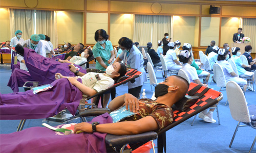 วันที่ 11 สิงหาคม 2563 ดร.ปัทมา ผ่องศิริ ผู้อำนวยการวิทยาลัยพยาบาลบรมราชชนนี สรรพสิทธิประสงค์ ได้เข้าร่วมกิจกรรมการบริจาคโลหิต “88 พรรษา เทิดไท้บริจาคโลหิต” เพื่อถวายเป็นพระราชกุศล สมเด็จพระนางเจ้าสิริกิติ์ พระบรมราชินีนาถ พระบรมราชชนนีพันปีหลวง เนื่องในโอกาสวันเฉลิมพระชนมพรรษา 12 สิงหาคม 2563 ณ ห้องประชุม ชั้น 6 อาคาร 50 พรรษา มหาวชิราลงกรณ โรงพยาบาลสรรพสิทธิประสงค์ โอกาสนี้นางยุพาภร วิฑูรย์ นายกเหล่ากาชาดจังหวัดอุบลราชธานี ได้ให้เกียรติเป็นประธานในพิธี โดยมี นพ.มนต์ชัย วิวัฒนาสิทธิพงศ์ ผู้อำนวยการโรงพยาบาลสรรพสิทธิประสงค์ ให้เกียรติกล่าวต้อนรับและพญ.ดร.จารุพร พรหมวงศ์ หัวหน้ากลุ่มงานธนาคารเลือดและเวชศาสตร์บริการโลหิต กล่าวรายงาน