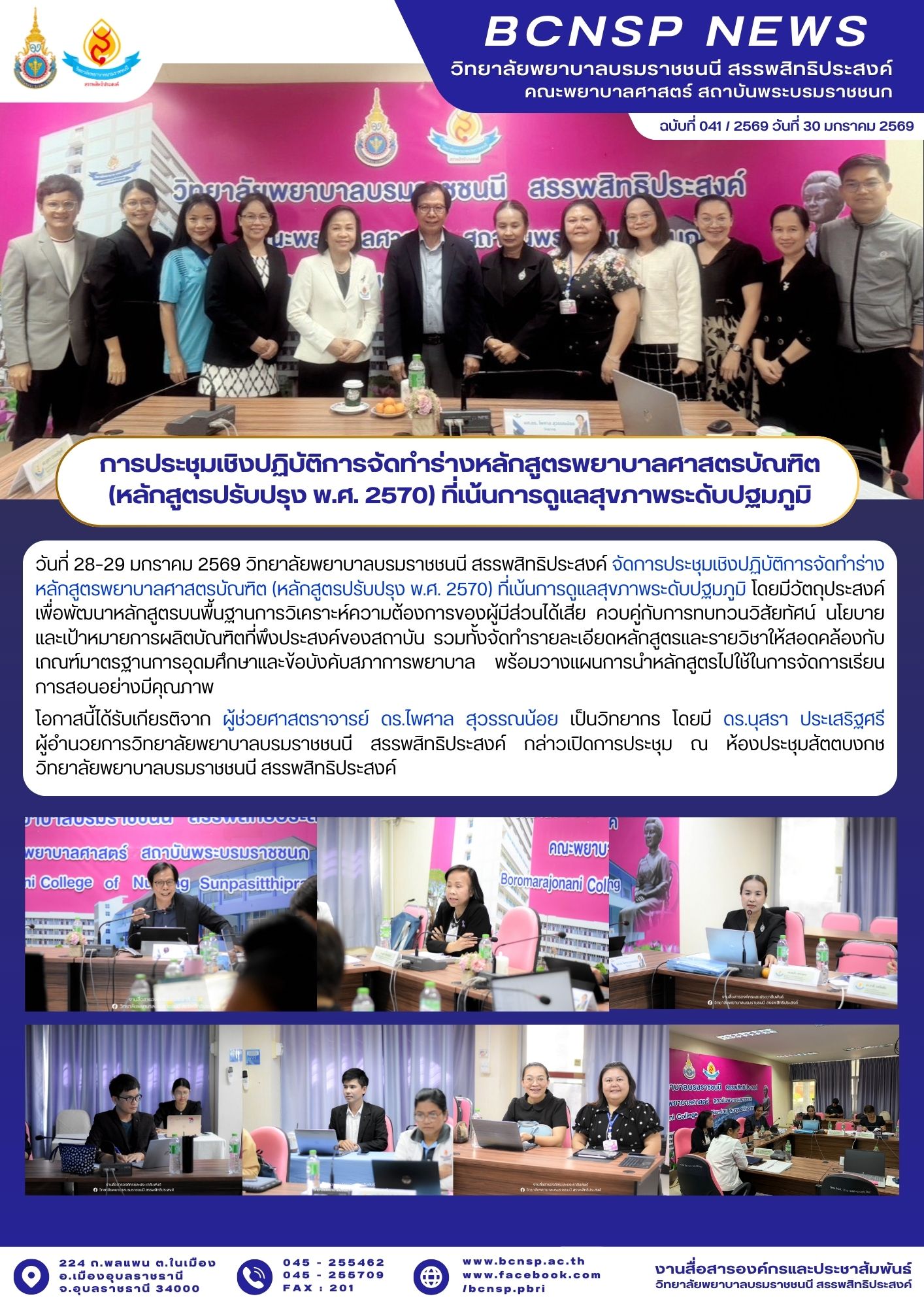 การประชุมเชิงปฏิบัติการจัดทำร่างหลักสูตรพยาบาลศาสตรบัณฑิต (หลักสูตรปรับปรุง พ.ศ. 2570) ที่เน้นการดูแลสุขภาพระดับปฐมภูมิ